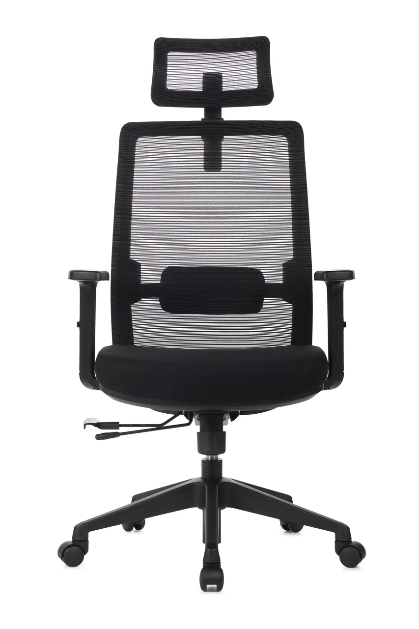Apoio de cabeça em tela com regulagem de altura e rotação;